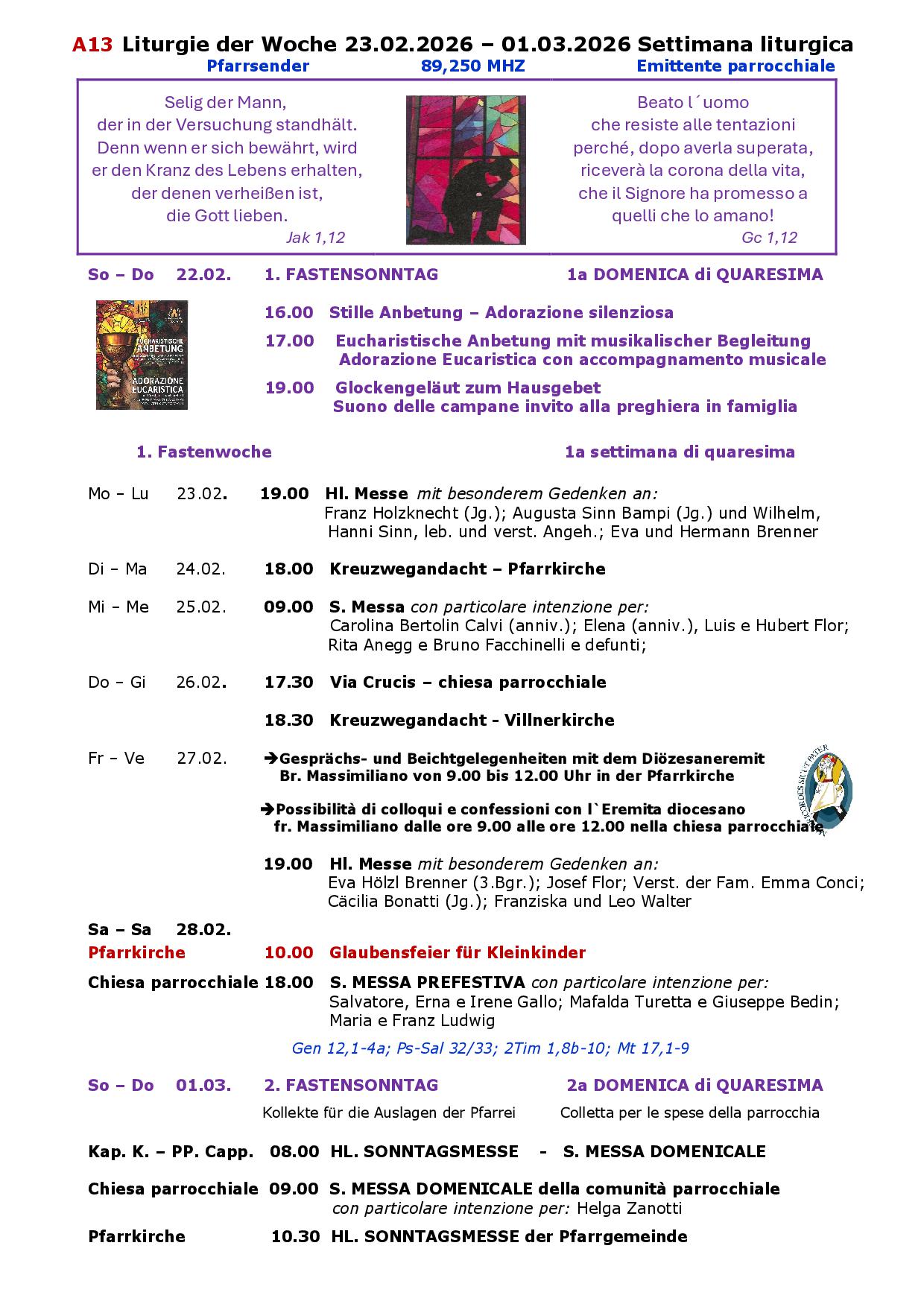 Comitato comunale di ed. permanente e ITINERARI MUSICALI invitano al concerto: - I ragazzi che fanno musica - "Tra fiati e archi" venerdì 27 febbraio alle ore 20.00 nella sala parrocchiale. TUTTI SONO INVITATI! ALLE SIND EINGELADEN!