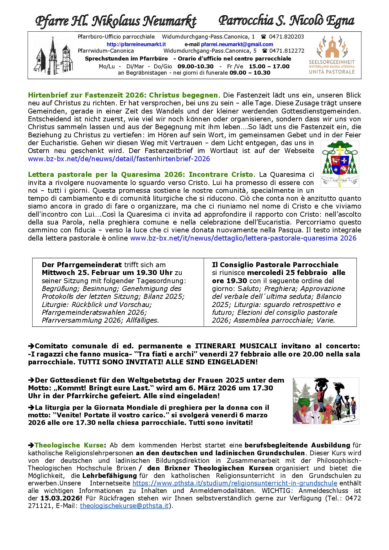 pastorale 2026; Assemblea parrocchiale; Varie.