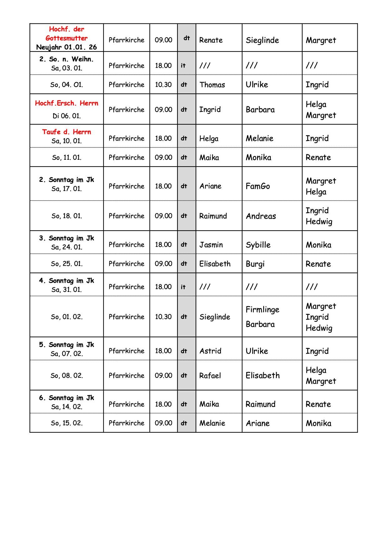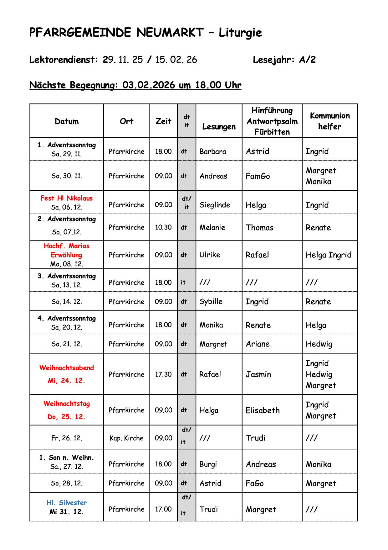 Lektorendienst vom 29.11.2025 bis 15.02.2026